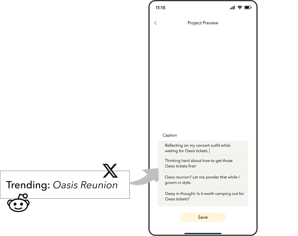 Run out of ideas? Don't worry. We're constantly on the lookout across popular platforms such as X and Reddit, hunting down the freshest trending topics. This ensures you're always in sync with the latest trends and can produce content that truly resonates with the online community.
