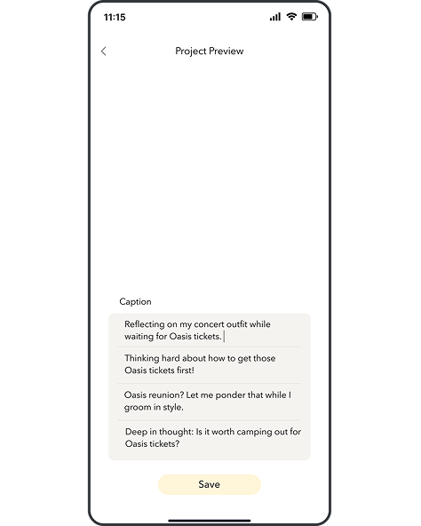 With Frame Intelligence, you can capture the perfect moments of your pet. Now just describe a topic for the sticker, like "I want to complain about my boss" or "I’m feeling good". The AI agent will analyze the video, understanding its context and your pet's behavior. Then, it will create engaging captions that match both the video and the topic.