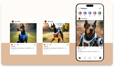 Using Tails & Frames means having a wealth of pet content. Struggling to turn your cute or funny pet moments into share-worthy social media posts? Our AI agent has you covered. It automatically creates great pet content like pet stickers, emojis, and artworks. Plus, by following online trends, it generates trendy posts, maximizing your pet's social media appeal.